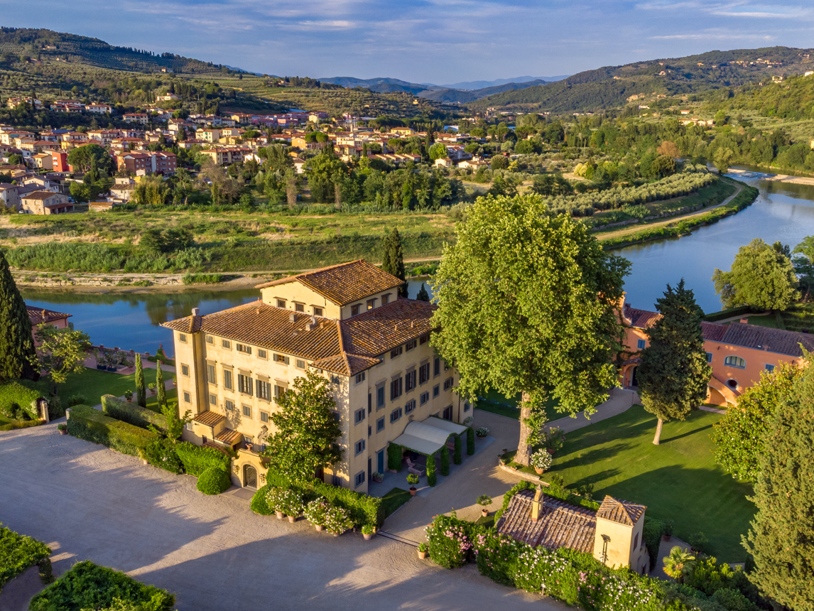 For the ultimate in privacy and exclusivity, guests can choose from the estate’s private villas, such as the Villino, a standalone residence offering unparalleled seclusion. The Villino Eugenia, an 18th-century villa, is ideal for families or groups looking for a more private retreat, with multiple bedrooms, spacious living areas, and sweeping views of the Arno River.